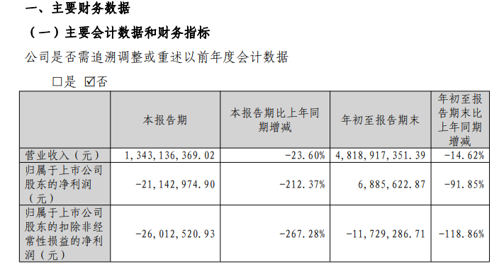 10月22日,石化机械(000852.SZ)发布2025年第三季度报告,前三季度实现营业收入48.19亿元,同比减少14.62%;归属于上市公司股东的净利润688.56万元,同比减少91.85%。第三季度营业收入13.43亿元,同比减少23.60%,净亏损2114.3万元。本期收入减少,同时产品结构发生变化,导致盈利能力下降。