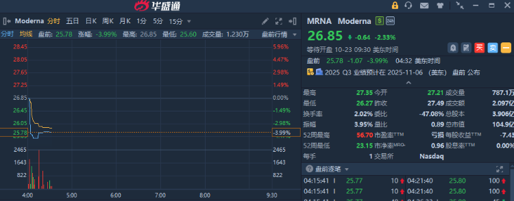 华盛资讯10月23日讯,Moderna盘前跌近4%,此前该公司因试验受挫而暂停开发预防出生缺陷的疫苗;IBM跌超6%,云计算业务增长放缓引发市场担忧。