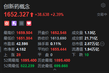 港股创新药概念股集体走高,药明康德绩后涨超7%