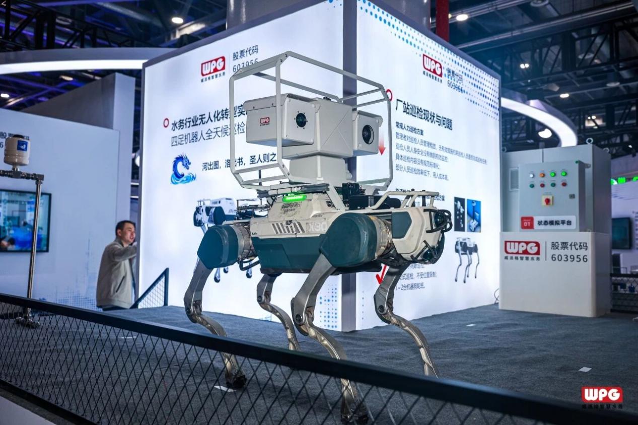 除了AI赋能智慧水务,威派格还在机器人领域持续拓展。今年4月,在中国城镇供水排水协会2025年会暨城镇水务技术与产品展示上,威派格携最新科研成果四足机器人亮相,直击水务行业全天候巡检的痛点,吸引众多水司负责人驻足。