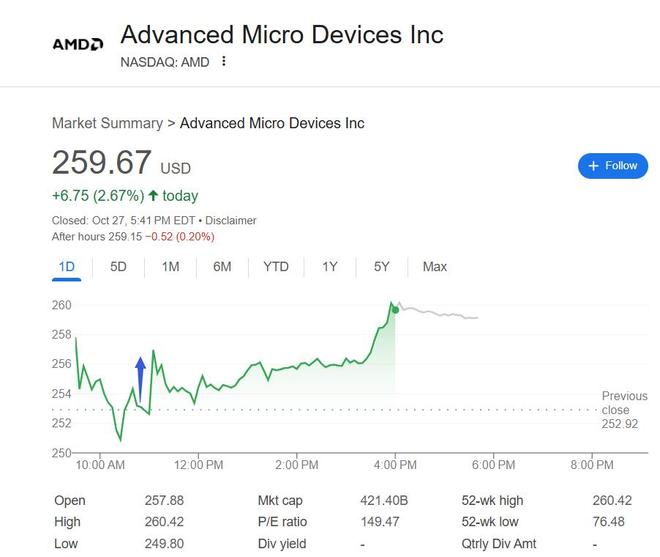报道传出后,美东时间27日周一,美股早盘小幅转跌的AMD股价迅速转涨,日内涨幅曾超过1%,此后保持涨势,尾盘涨幅扩大,收涨将近2.7%,连续两个交易日刷新收盘最高纪录。