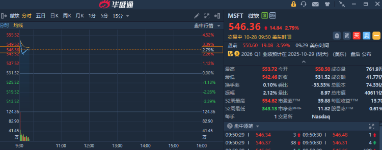华盛资讯10月28日讯,美股大型科技股集体上涨,微软涨近3%,公司与OpenAI签署新协议。