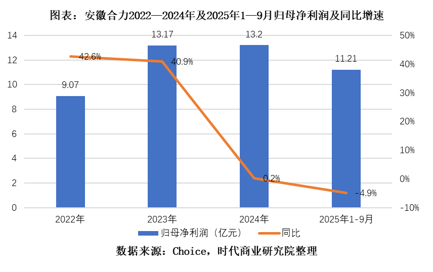 低估值的核心原因可能在于增长乏力。安徽合力2022—2024年度归母净利润分别为9.07亿元、13.17亿元、13.20亿元,同比增速分别为42.6%、40.9%、0.2%,2025年前三季度归母净利润增速则转负为-4.9%。