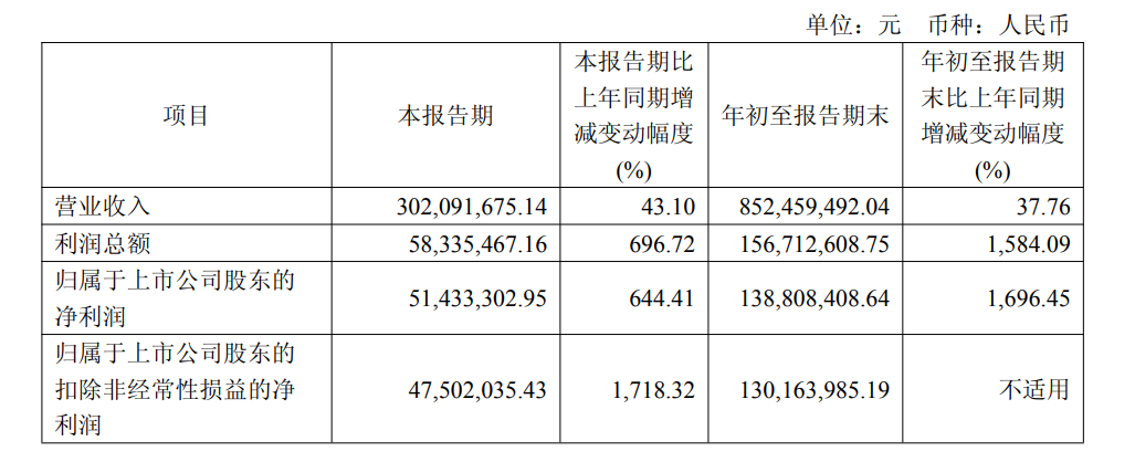 10月29日,宏和科技(603256.SH)公告称,第三季度实现营业收入3.02亿元,同比增长43.10%;归属于上市公司股东的净利润为5143.33万元,同比增长644.41%。前三季度实现营业收入8.52亿元,同比增长37.76%;归属于上市公司股东的净利润为1.39亿元,同比增长1696.45%。