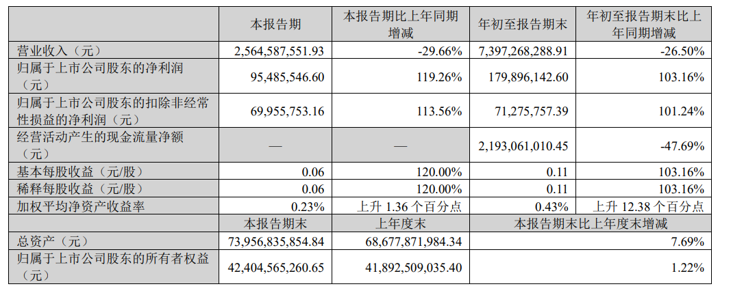 10月29日,天齐锂业(002466.SZ)发布2025年第三季度报告,第三季度营收为25.65亿元,同比下降29.66%;净利润为9548.55万元,同比扭亏为盈。前三季度营收为73.97亿元,同比下降26.50%;净利润为1.80亿元,同比扭亏为盈。