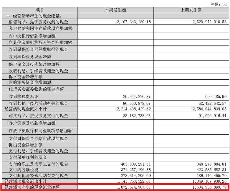 1、经营现金流10.73亿元,造血能力仍强劲;