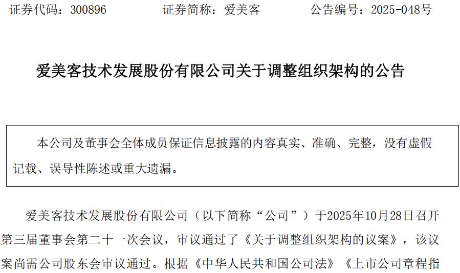 在收购了韩国REGEN Biotech,Inc.后,爱美客为调整聚焦“治理结构优化”与“运营效率提升”,在发布三季报的同时,爱美客还发布了关于调整组织架构的公告。