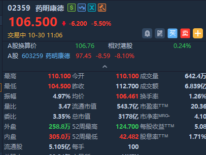 药明康德跌超5%,实际控制人控制的股东拟减持不超2%公司A股股份。