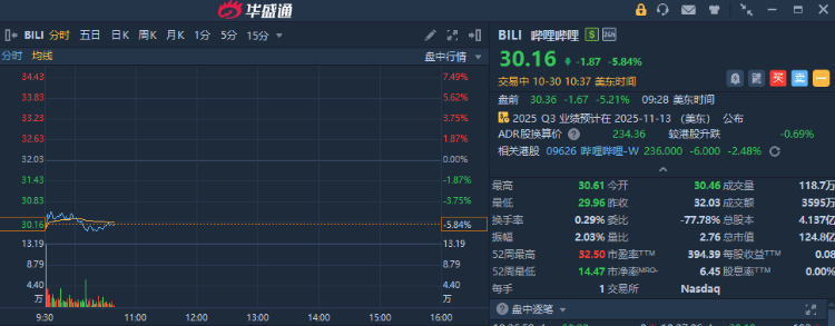 华盛资讯10月30日讯,热门中概股盘中多数走低,哔哩哔哩跌近6%,百度跌近4%。