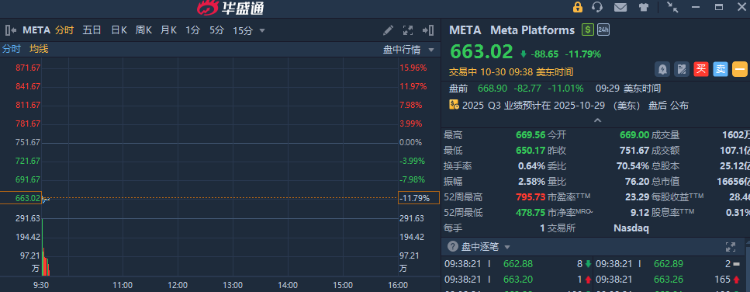 Meta $META 开盘走弱,跌幅扩大至近12%;公司Q3业绩因一次性税费致季度盈利暴跌,并计划发债筹集至少250亿美元。