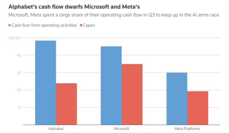 华盛资讯10月31日讯,本周微软、谷歌、亚马逊、 $META 四大科技巨头发布最新财报,创纪录的资本支出成为贯穿所有巨头财报的共同主线。