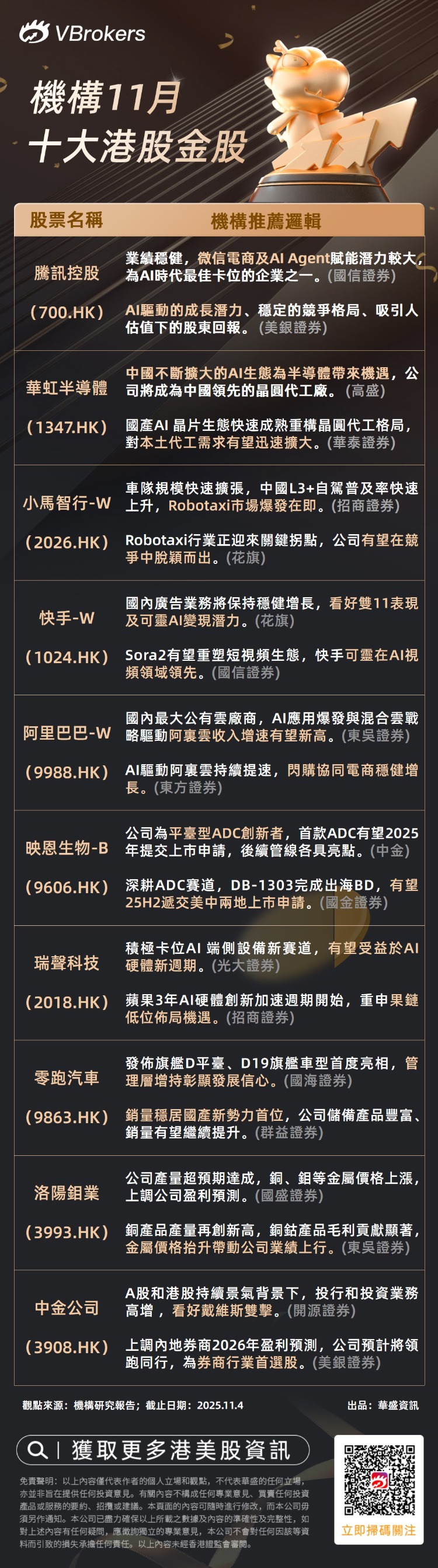一图看懂:11月港股金股及机构推荐逻辑