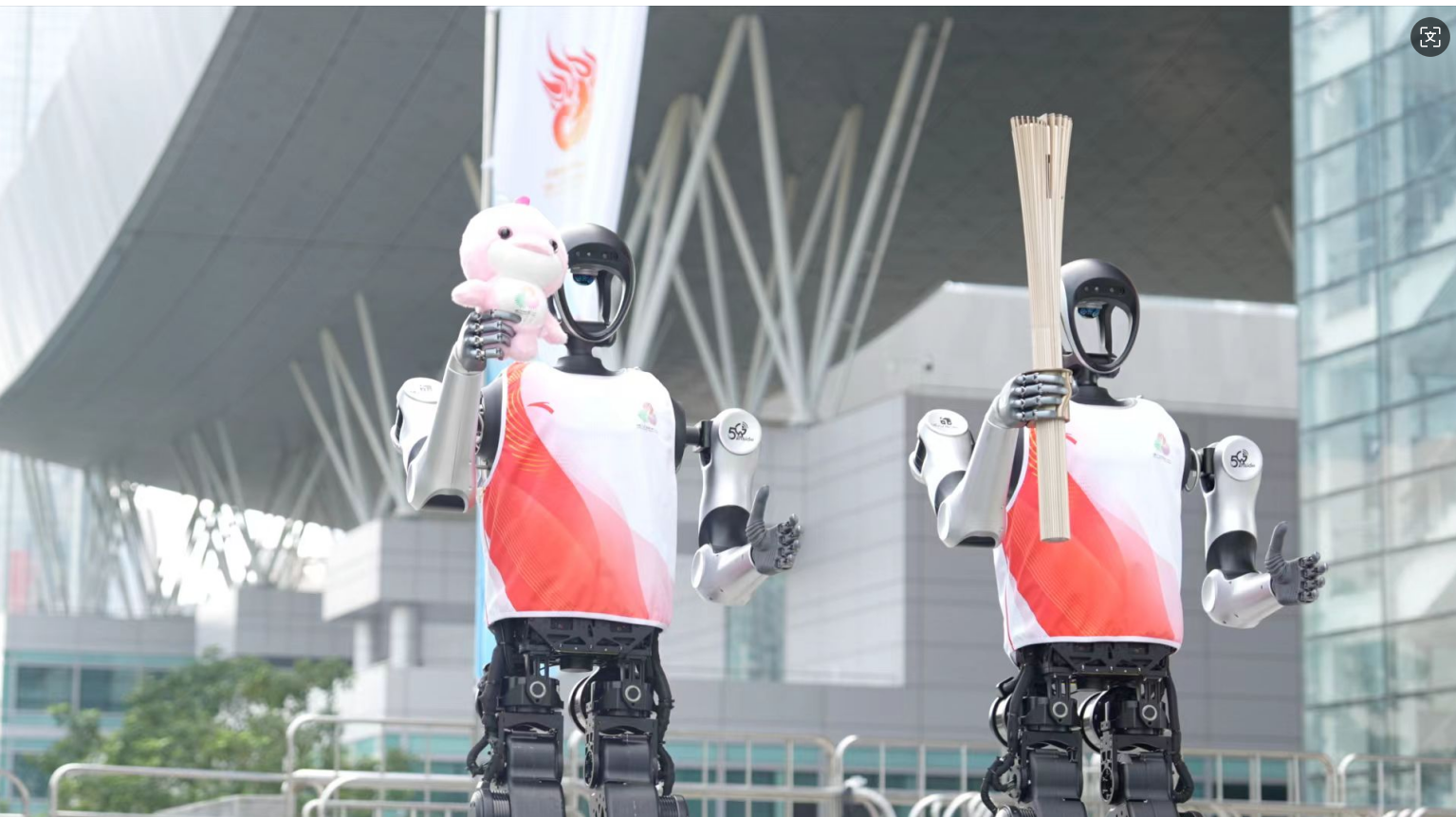 11月2日9时,深圳市莲花山公园,一名特殊的火炬手手握1.6千克重的火炬,在第二棒与第三棒之间精准接棒,独立完成了火炬的传递。它和普通的人类火炬手不一样,银灰色手臂配合着黑色双腿摆动,在阳光下泛着金属的光泽。