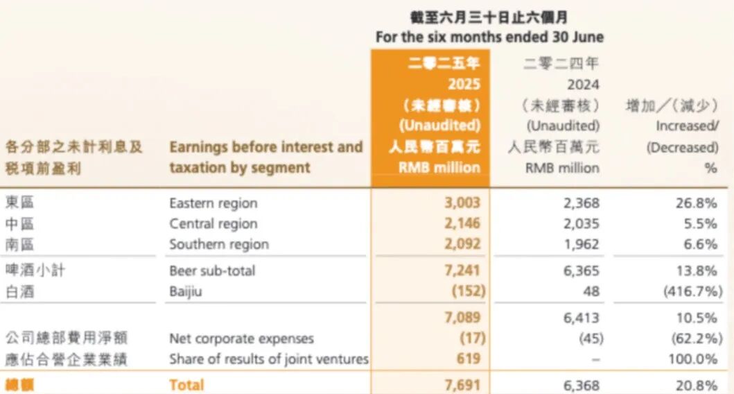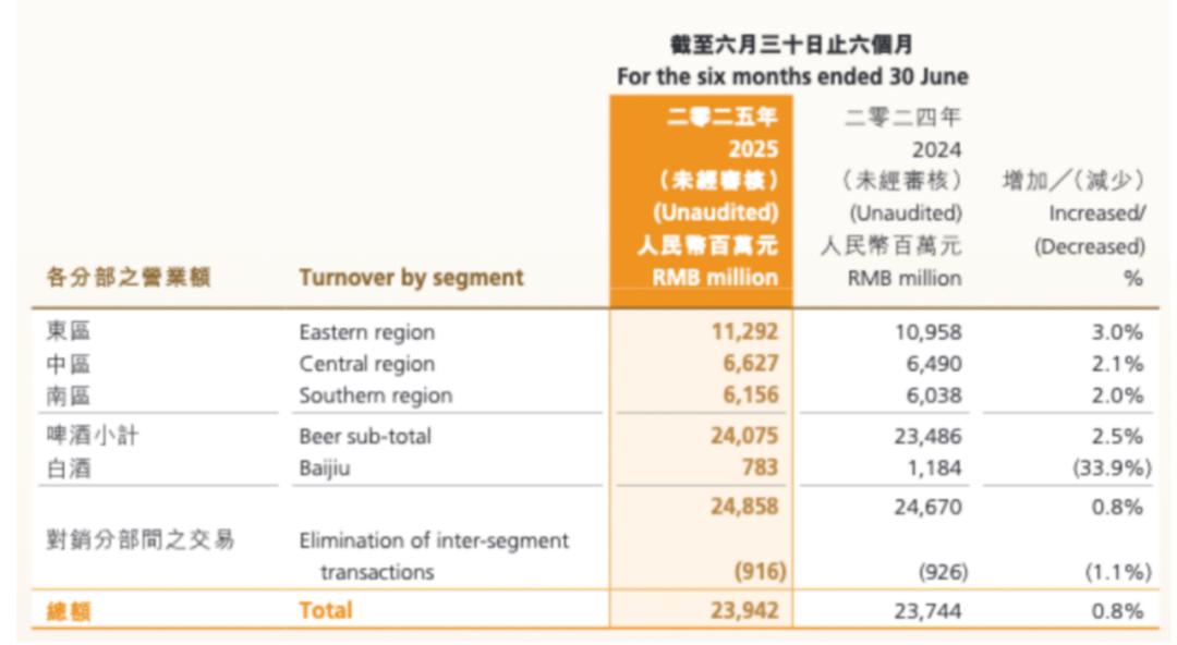 【截图来自华润啤酒中期报】