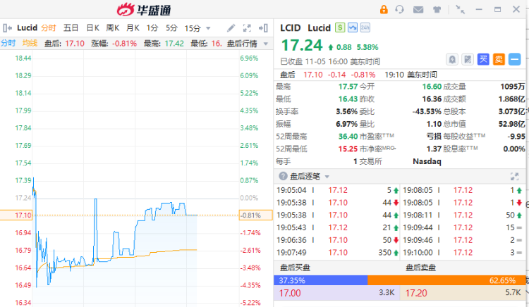 华盛资讯11月6日讯,新能源汽车公司Lucid盘后一度跌超3%,公司Q3营收3.37亿美元,同比增长68.3%,股权持有人应占亏损10.35亿美元,同比亏损扩大8.9%。