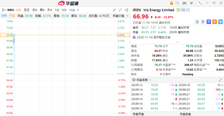 华盛资讯11月7日讯,数据中心电力供应商 $IREN 夜盘大涨4%,Q3营收2.40亿美元,同比增长355.4%,归母净利润3.85亿美元,扭亏为盈。