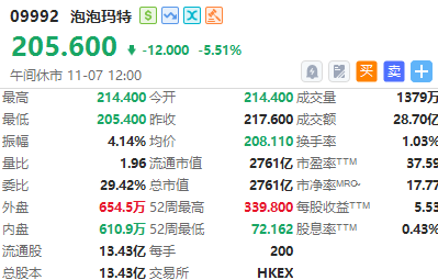 新消费概念走弱,泡泡玛特跌超5%。近日,泡泡玛特某平台官方直播间在推广某款IP周边产品时,两名现场工作人员的对话被直播间收录,一位工作人员称该款产品为什么卖得很贵,另一位则回应:“没事会有人买单的。”该直播事故引起巨大讨论,#泡泡玛特直播事故#的词条迅速登上了热搜第一。网传消息称,涉事的两位工作人员已经被开除,连带相关部门也被追责。新浪科技从泡泡玛特内部人士处获悉,“确实发生了直播事故,公司正在紧急调查,但不会开除直播事故中相关员工。”
