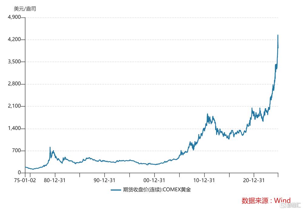 1971年布雷顿森林体系崩溃,美元与黄金脱钩,黄金不再被固定在35美元/盎司;