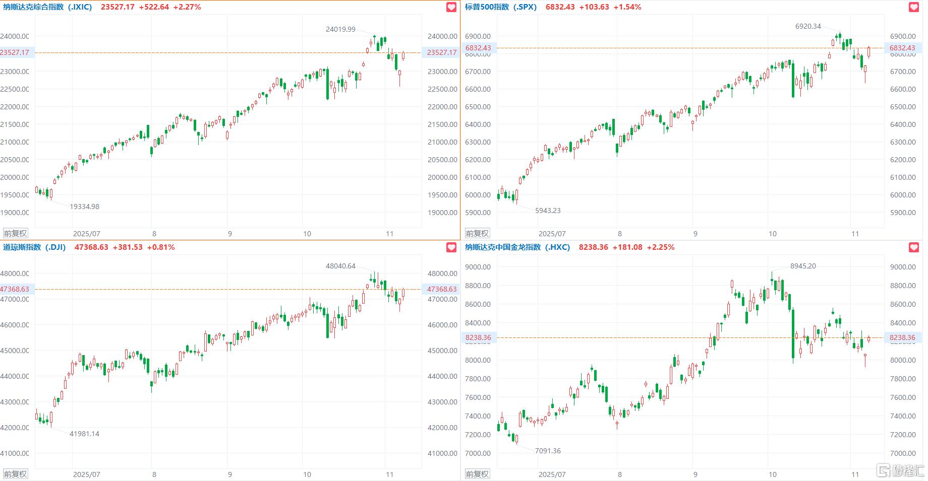 1、美股三大指数集体收涨,纳指、中概指数涨超2%,英伟达涨近6%;