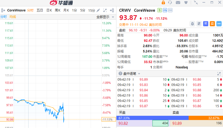 AI云计算概念集体走弱,CoreWeave绩后重挫11%,Nebius $NBIS 绩后跌超3%,甲骨文跌跌超2%。
