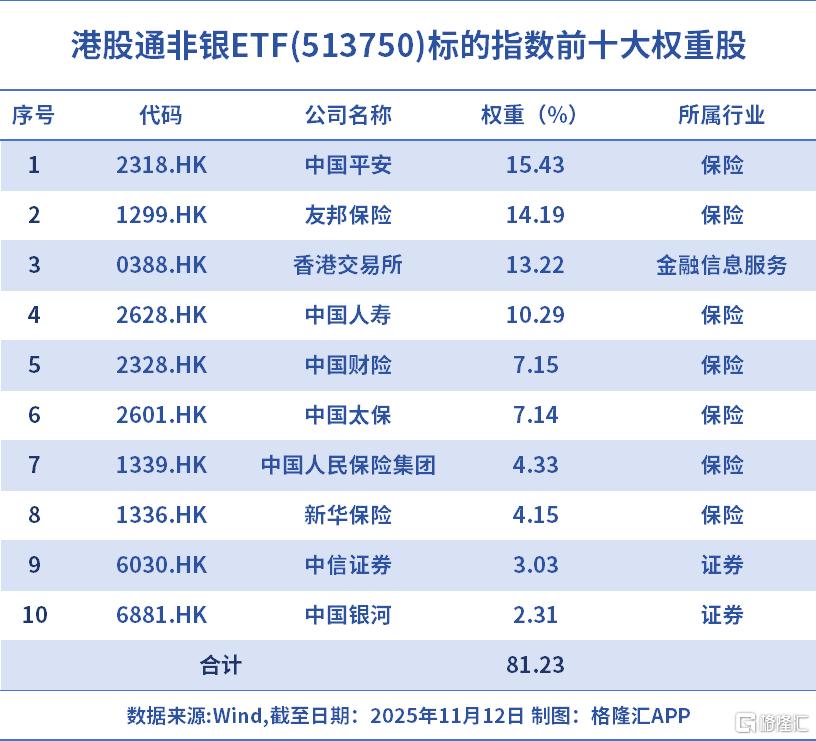 港股通非银ETF(513750)是全市场唯一跟踪中证港股通非银行金融主题指数的ETF,不受QDII额度限制,其成份股为“67%保险+13%港交所+15%券商”,是全市场保险含量最高、港交所含量最高的ETF标的指数。(全文完)