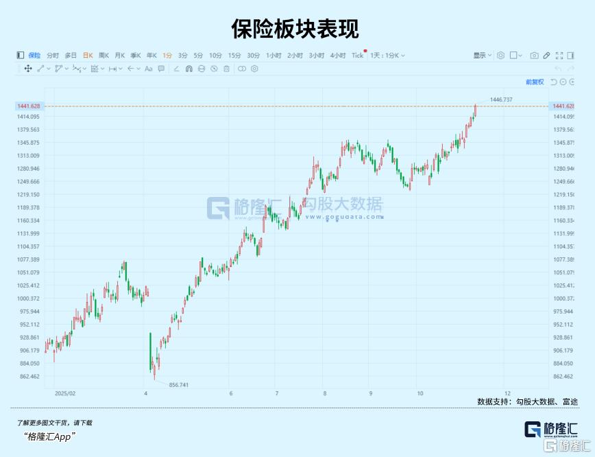 从板块走势来看,保险股从三季度末的调整中走出后一路上行,持续突破年内新高。近期险企相继发布超预期业绩数据,市场对于去年同期高基数压力的担忧缓解,在景气投资回归的当下,保险公司股价有望延续新一轮上涨。