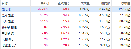 锂业股早盘走强,赣锋锂业、天齐锂业双双涨超5%,宁德时代涨超2%。
