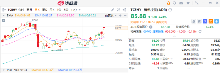 华盛资讯11月7日讯,美股早盘低开低走,纳指跌幅扩大至1%,热门中概股涨跌不一腾讯控股(ADR)( $TCEHY )盘涨超2%,公司Q3营收、净利全面超预期。