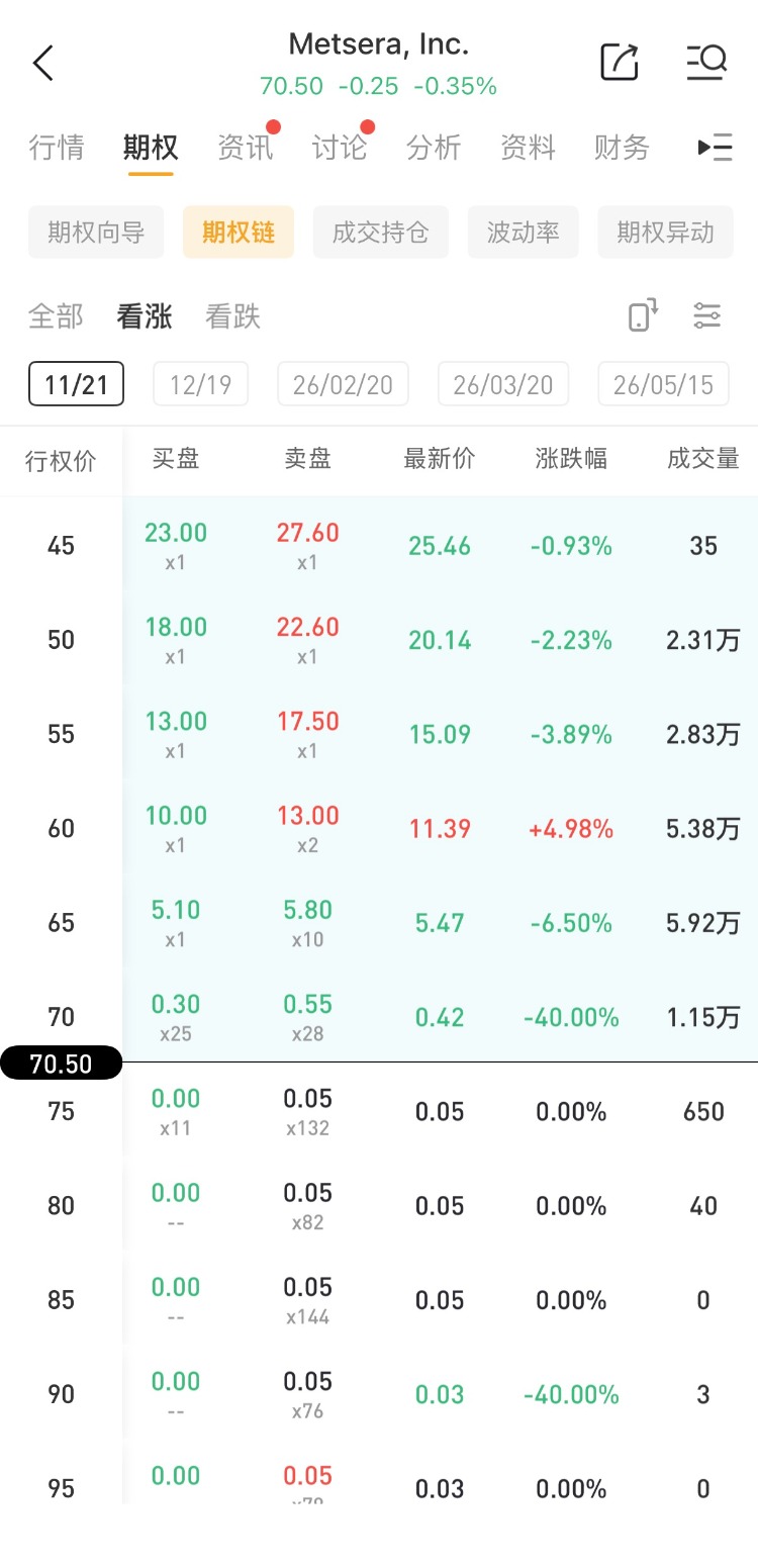 Metsera:隔夜跌0.35%,看涨期权交易激增,成交32.52万张,占比超96%,其中: