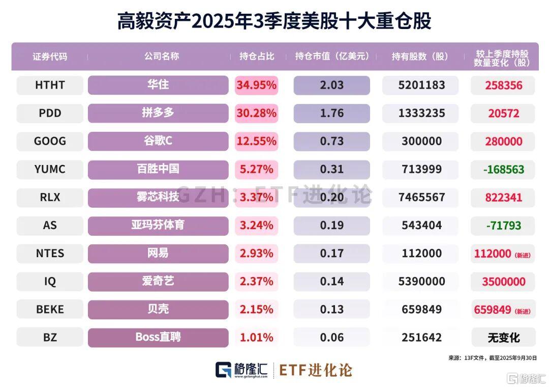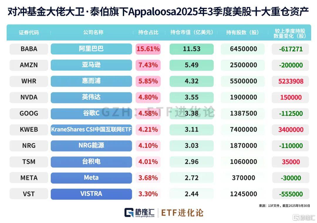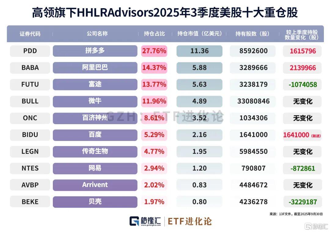 中概股是高瓴资本三季度的主要加仓方向,新进买入百度,并增持阿里巴巴、拼多多等中概股;景林资产也加仓了阿里巴巴和拼多多;东方港湾海外基金新进阿里巴巴、博通和Astera Labs。
