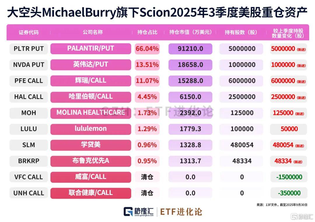 史蒂文·科恩第一重仓股是标普500指数ETF看跌期权,同时买入标普500指数ETF看涨期权和纳指100指数ETF看跌期权;索罗斯新进标普500等权重ETF,橡树资本的霍华德·马克思三季度新进甲骨文看跌期权。