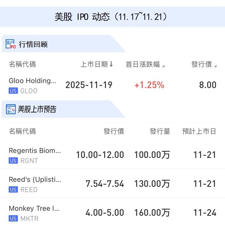 美股方面,本周4家新股上市,香港英语语言教育提供商 $MKTR 将于下周上市。