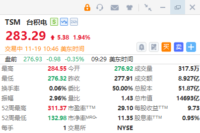华盛资讯11月19日讯,热门中概股走势分化,亚玛芬体育大涨近6%,台积电涨近2%,贝壳、瑞幸咖啡涨超1%,阿里巴巴、携程网涨约0.5%;