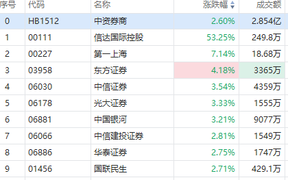 11月20日讯,中资券商股集体大涨!信达国际暴涨61%,东方证券涨超4%,中信证券、中国银河涨超3%。
