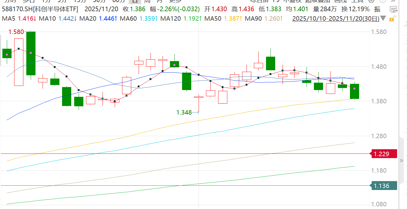 11月20日,英伟达(NVDA.US)公布超预期三季度财报,绩后大涨超6个点,A股今日光模块板块率先冲高。科创半导体ETF(588170)冲高回落,但资金仍坚定看好,昨日已经获得资金加仓超2000万元。