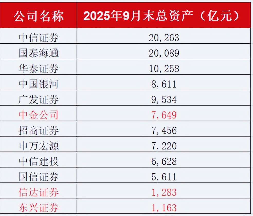 信达证券、东兴证券总资产分别为1283亿元、1164亿元,分列26和27位。新中金公司总资产有望破万亿元,将超过广发证券,进入前四,甚至有望取代华泰证券,位列三甲,综合实力将上一个大台阶。