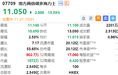 华盛资讯11月21日讯,港股存储、半导体概念下挫,南方两倍做多海力士跌超15%,华虹半导体跌近5%,中芯国际跌超4%。