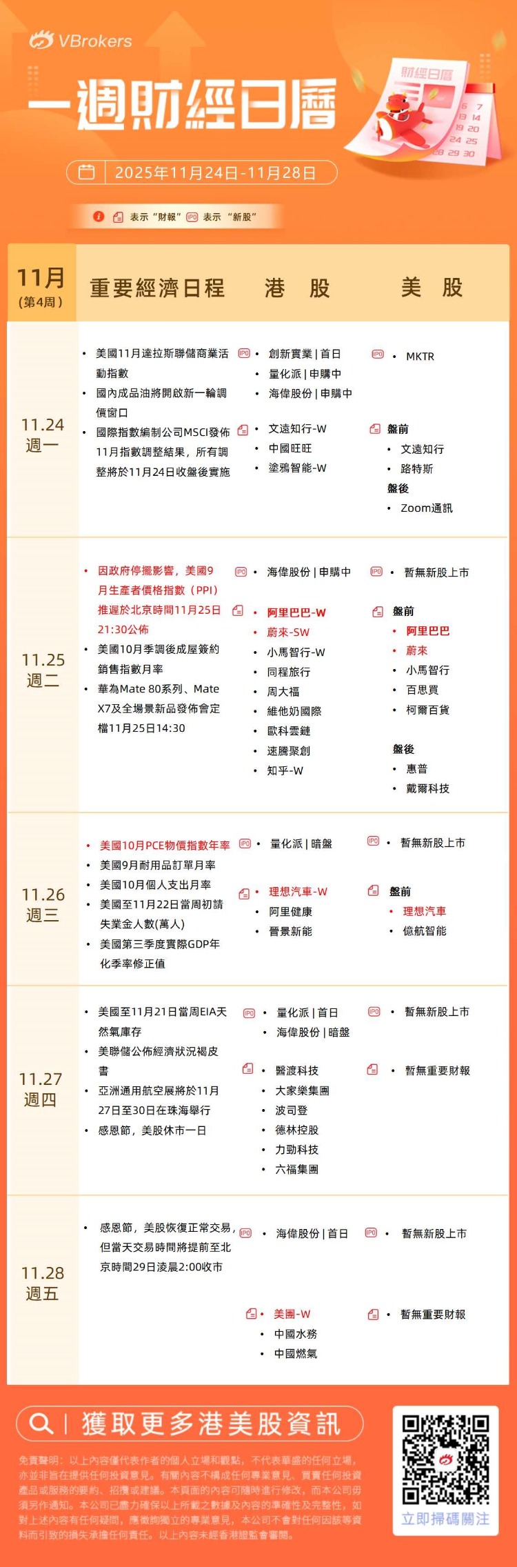编者按:迟来40天!美国9月PPI下周公布;10月PCE数据来袭;阿里、美团、蔚来等财报压轴登场;美股下周四因感恩节休市,下周五提前3小时闭市。