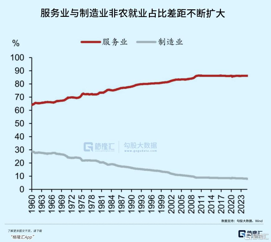 这种分化与美国经济结构密切相关,服务业占GDP比重已达80.2%,而制造业占比仅8.4%,就业增长高度依赖消费端。