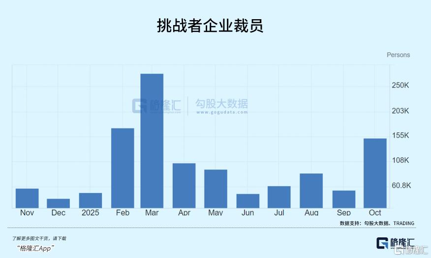 当前私营部门数据已经出现疲软迹象:10月ADP就业仅新增8.3万人,低于预期的10万人;挑战者企业裁员人数环比增长17%,科技和零售行业裁员占比达62%。