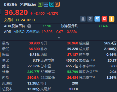 名创优品再跌超6%,三季度收入增速超指引上限,纯利同比下滑逾三成。