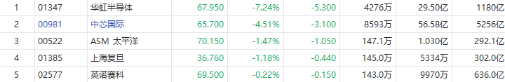 港股芯片股跌幅居前,截至发稿,华虹半导体跌超7%,中芯国际跌超4%,上海复旦跌超1%。