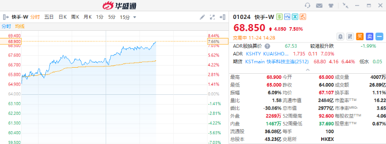 AI应用概念股持续走高,截至发稿,创新奇智涨超8%,快手-W涨超7%,阅文集团涨近6%,阿里巴巴-W、美图公司涨超5%。