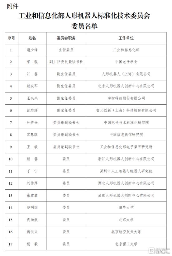 11月24日,工业和信息化部人形机器人标准化技术委员会委员名单公示。