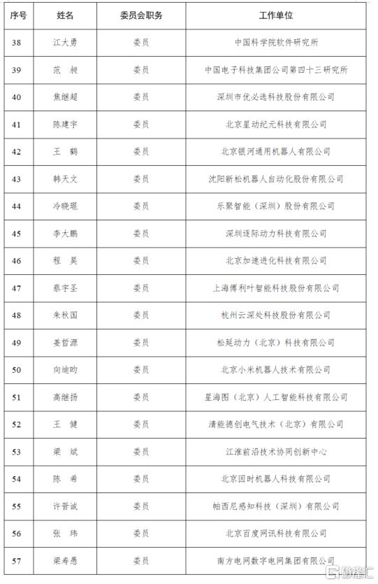 其中,宇树科技股份有限公司王兴兴、智元创新(上海)科技股份有限公司彭志辉在列,任副主任委员。