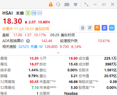 禾赛飙升近20%,公司发布自研RISC-V激光雷达主控芯片费米C500;