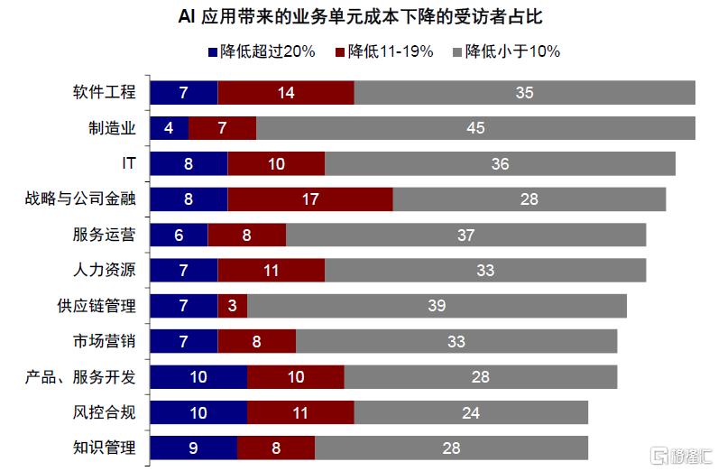 图表:麦肯锡调查显示AI应用平均带来9~11%的成本下降