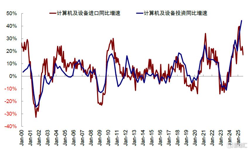 图表:计算机设备的投资与进口相关性高