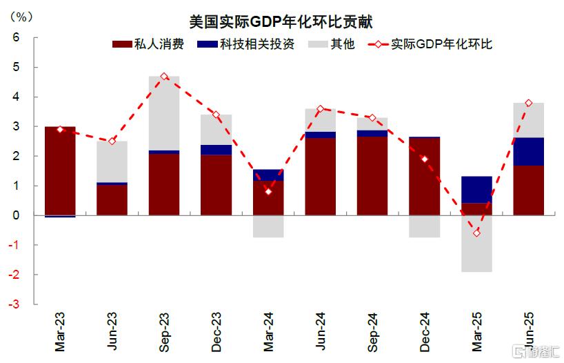 图表:2025上半年实际GDP年化环比平均1.6%的增长中,科技投资贡献了0.9ppt