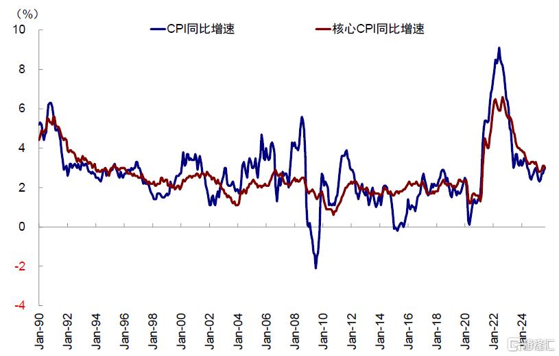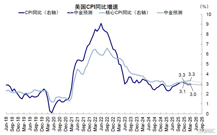图表:明年一季度美国CPI同比或从3.1%回落至3.0%,核心CPI同比维持在3.3%
